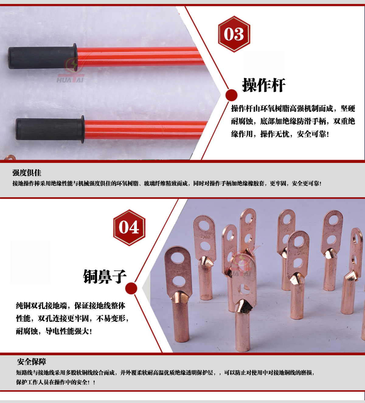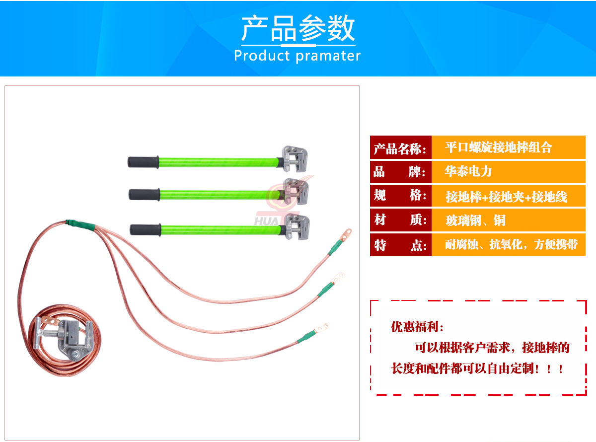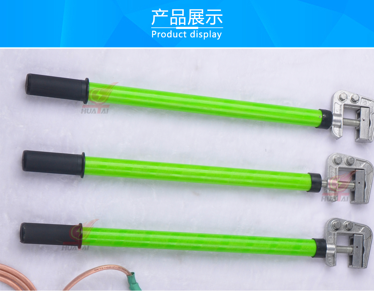 單管活頭勾口,5*3+5米,導(dǎo)線截面為50平方,帶線夾(口徑100mm)和接地端(帶旋轉(zhuǎn)把手),每組地線配置一根操作桿。帶出廠日期、型號(hào)、電壓等級(jí)的銘牌。