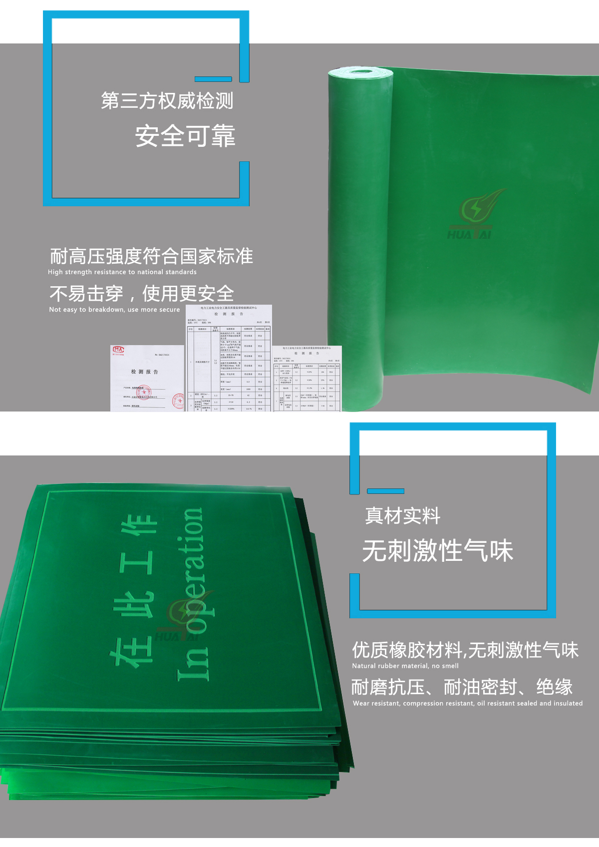 我公司的絕緣膠墊是采用性能優(yōu)良的非極性純橡膠制作,不含次膠、廢膠、再生膠和任塑料成份。膠墊表面電阻和體積電阻穩(wěn)定,單位面積比重大、平展性能好,物理性能穩(wěn)定。