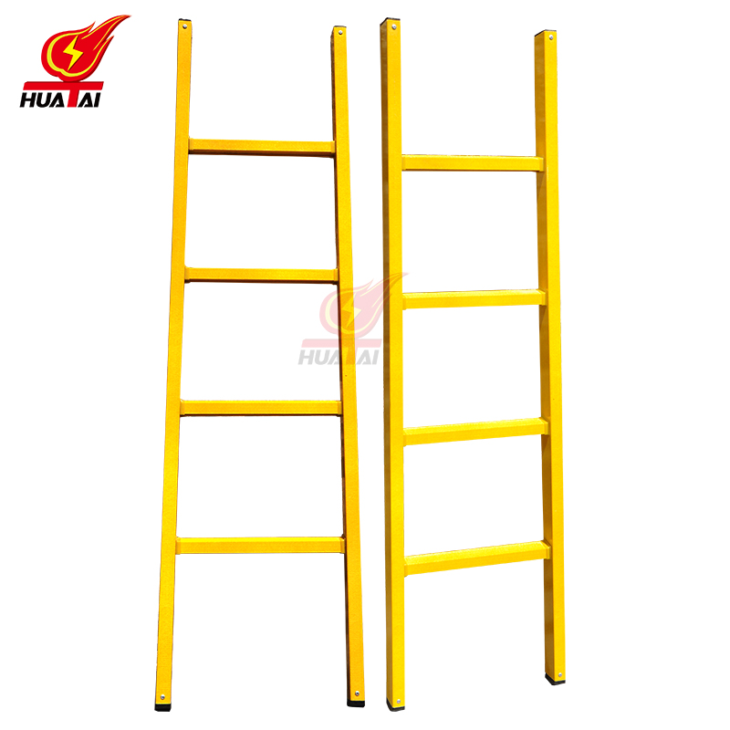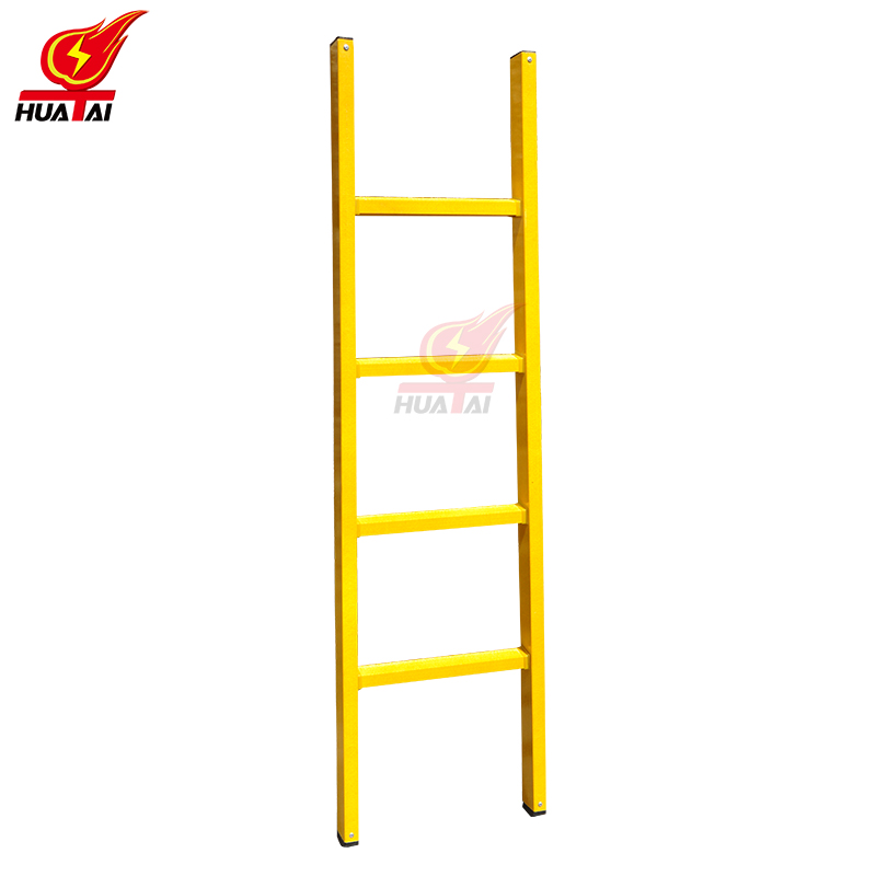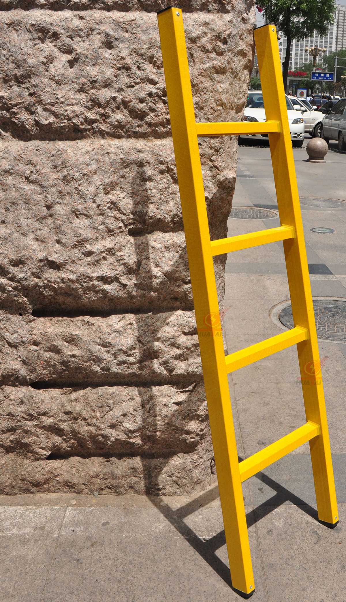 絕緣梯采不飽和樹脂和玻璃纖維聚合拉擠制造工藝,材質(zhì)選用環(huán)氧樹脂結(jié)合銷棒技術(shù),軸類鋼制件表面有防護(hù)鍍層;絕緣層壓類材料制件加工表面用了絕緣漆進(jìn)行處理。