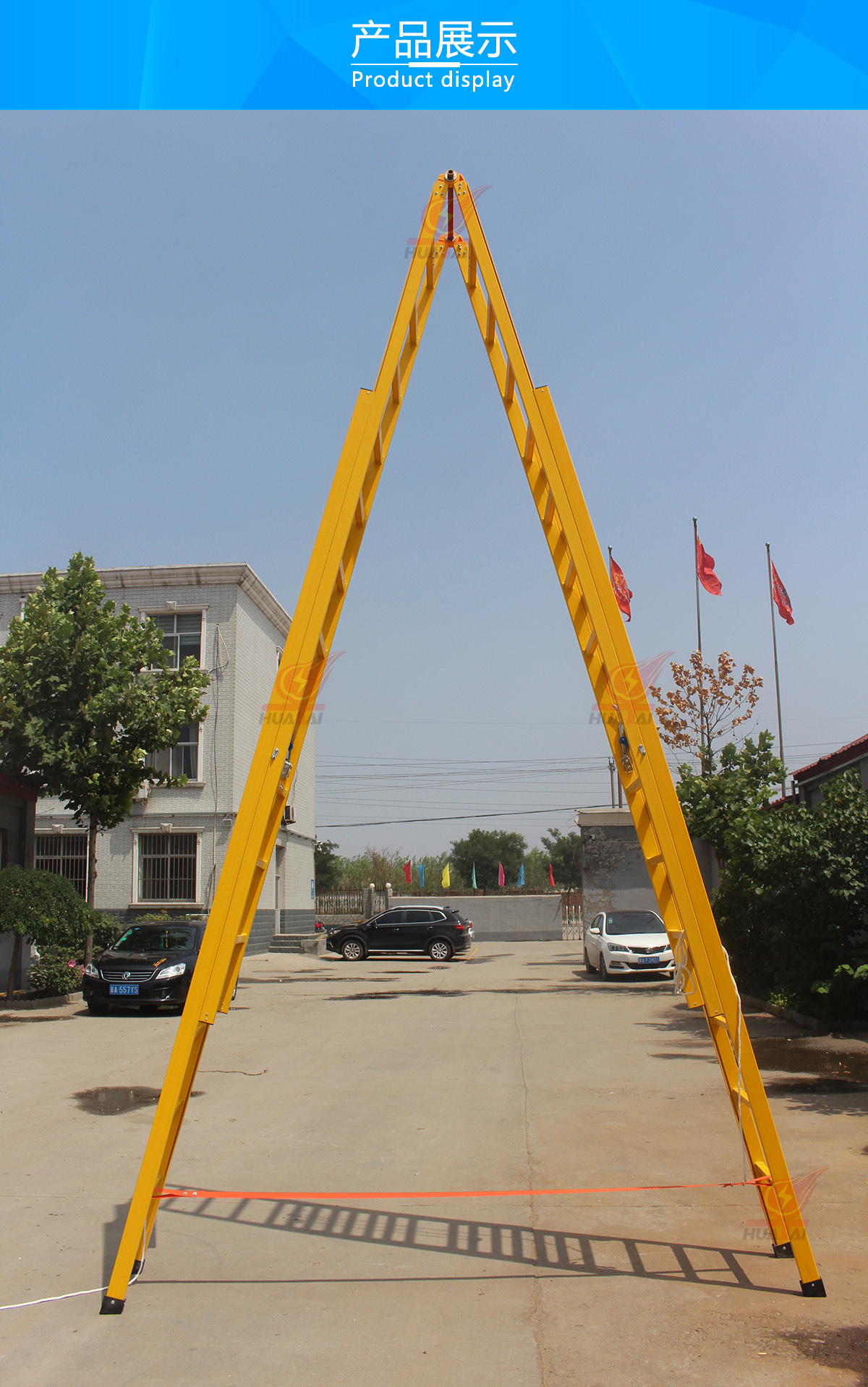 2、梯腳具有防滑效果。但依然需要有人員用手直接扶住梯子驚醒保護(hù)(同時放置梯子側(cè)歪),并用腳踩住梯子的底腳,以防底腳發(fā)生移動。