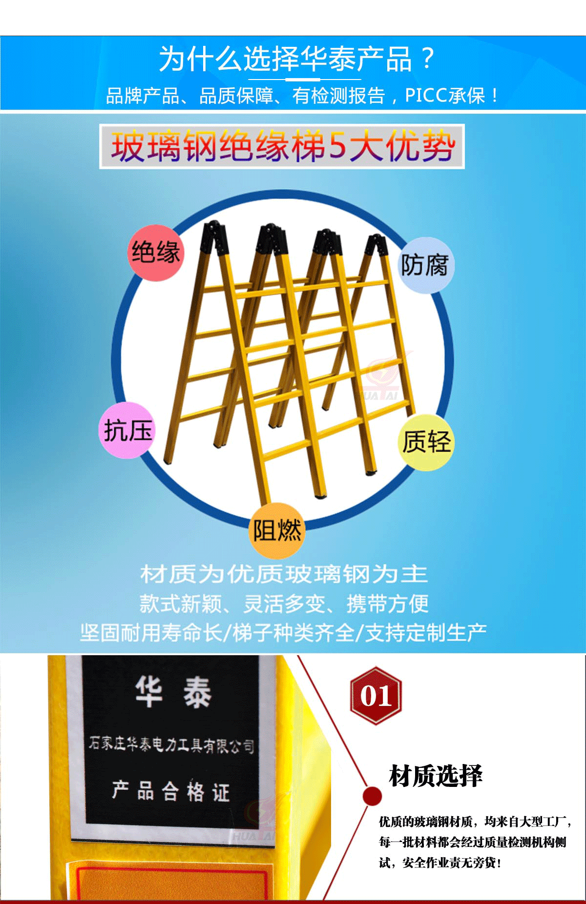 防誤操作引起的觸電事故。經(jīng)過嚴(yán)格測試檢驗的玻璃鋼梯還可以用做高壓帶電作業(yè)用梯。