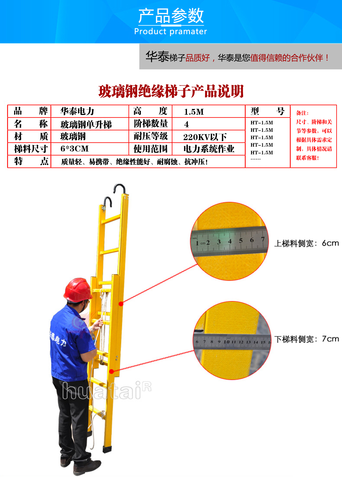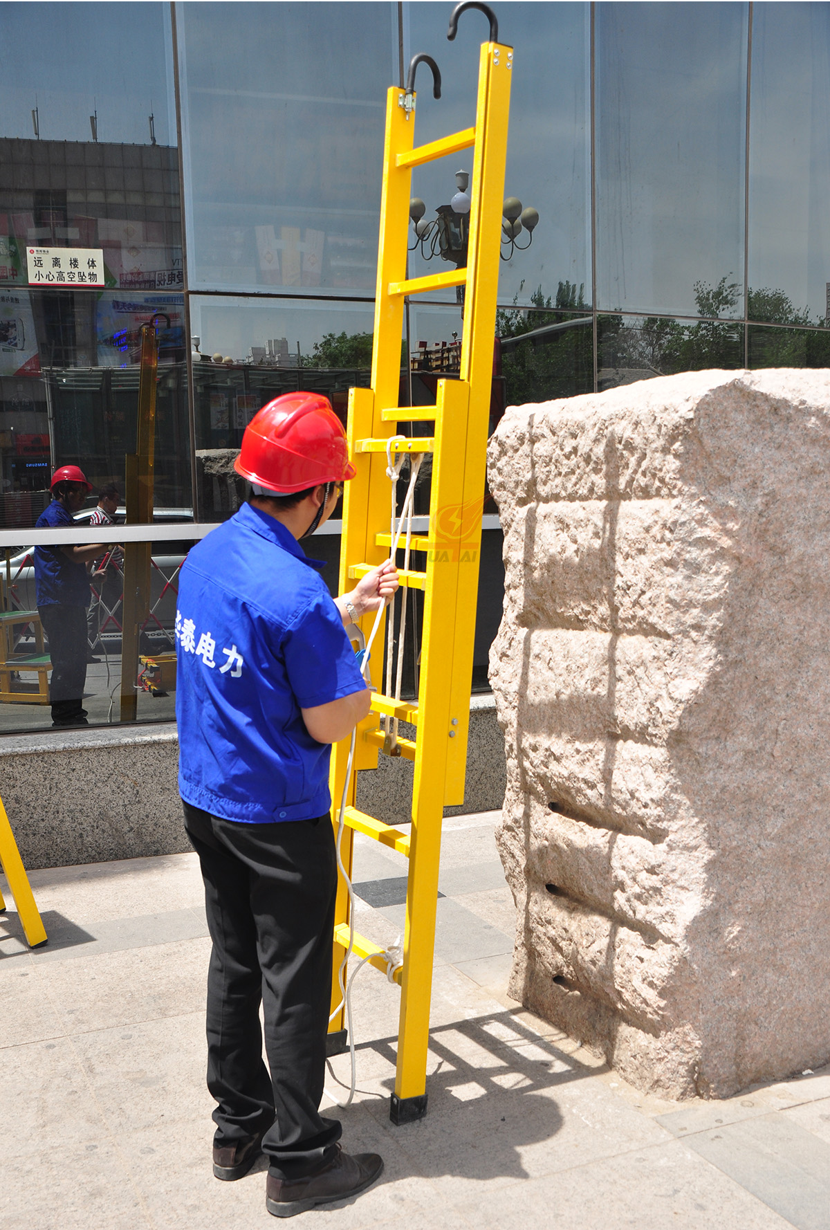 4、 如果絕緣梯使用高度超過(guò)5米,請(qǐng)務(wù)必在梯子中上部設(shè)立F8以上拉線。