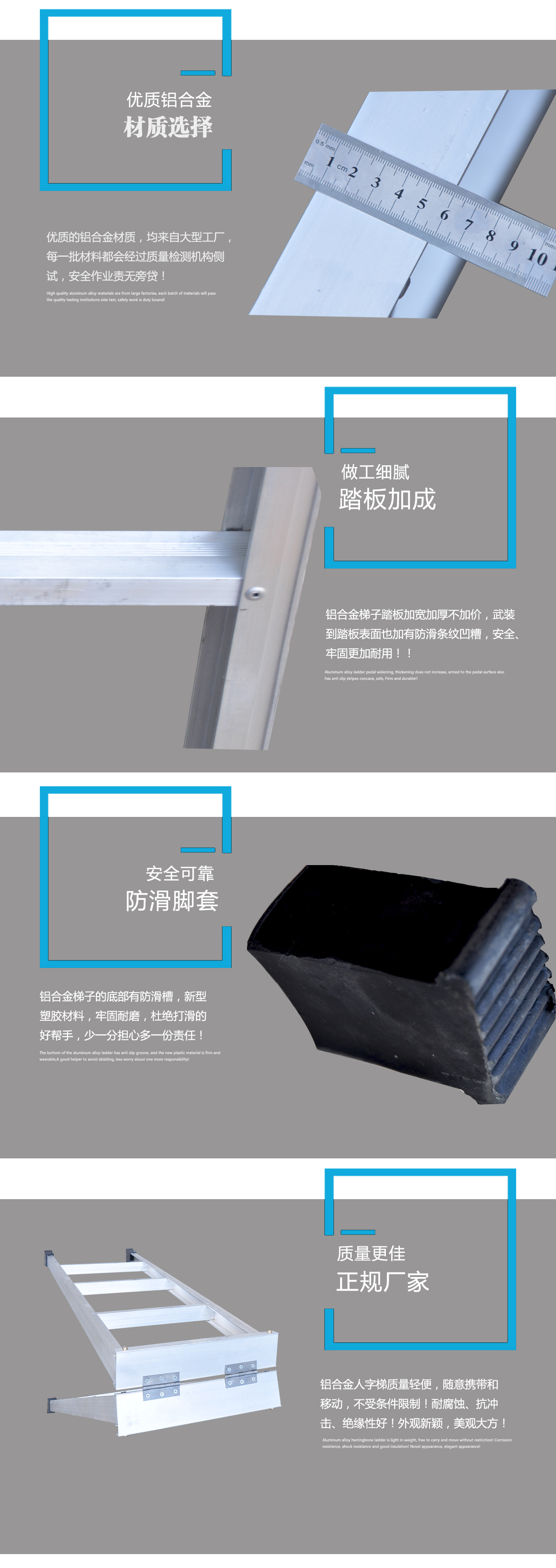 3、攀登鋁合金人字梯子時(shí)必須穿平底鞋,以免打滑發(fā)生意外。