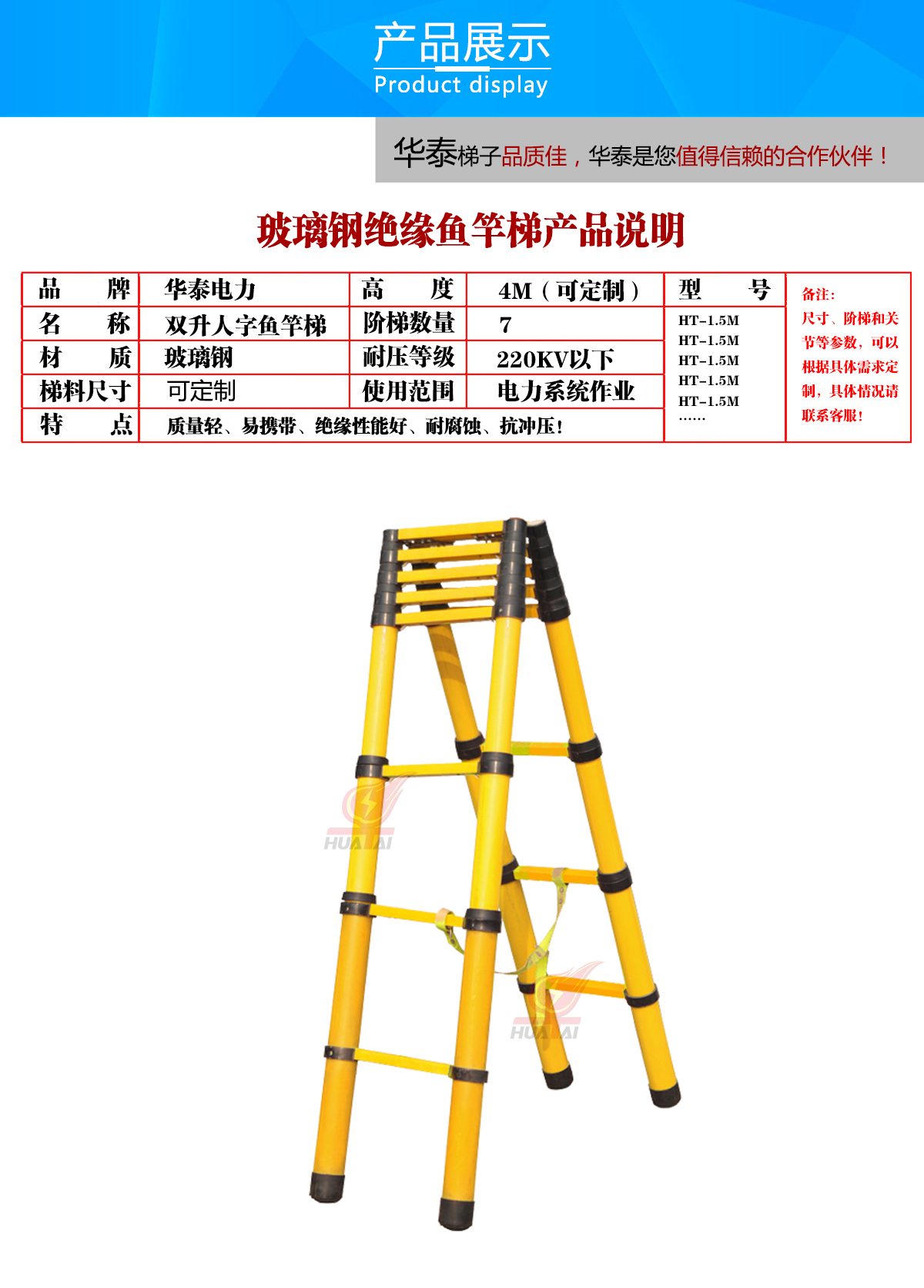 (1)黑邊雙升魚(yú)竿梯不導(dǎo)電,外觀新穎,美觀大方。