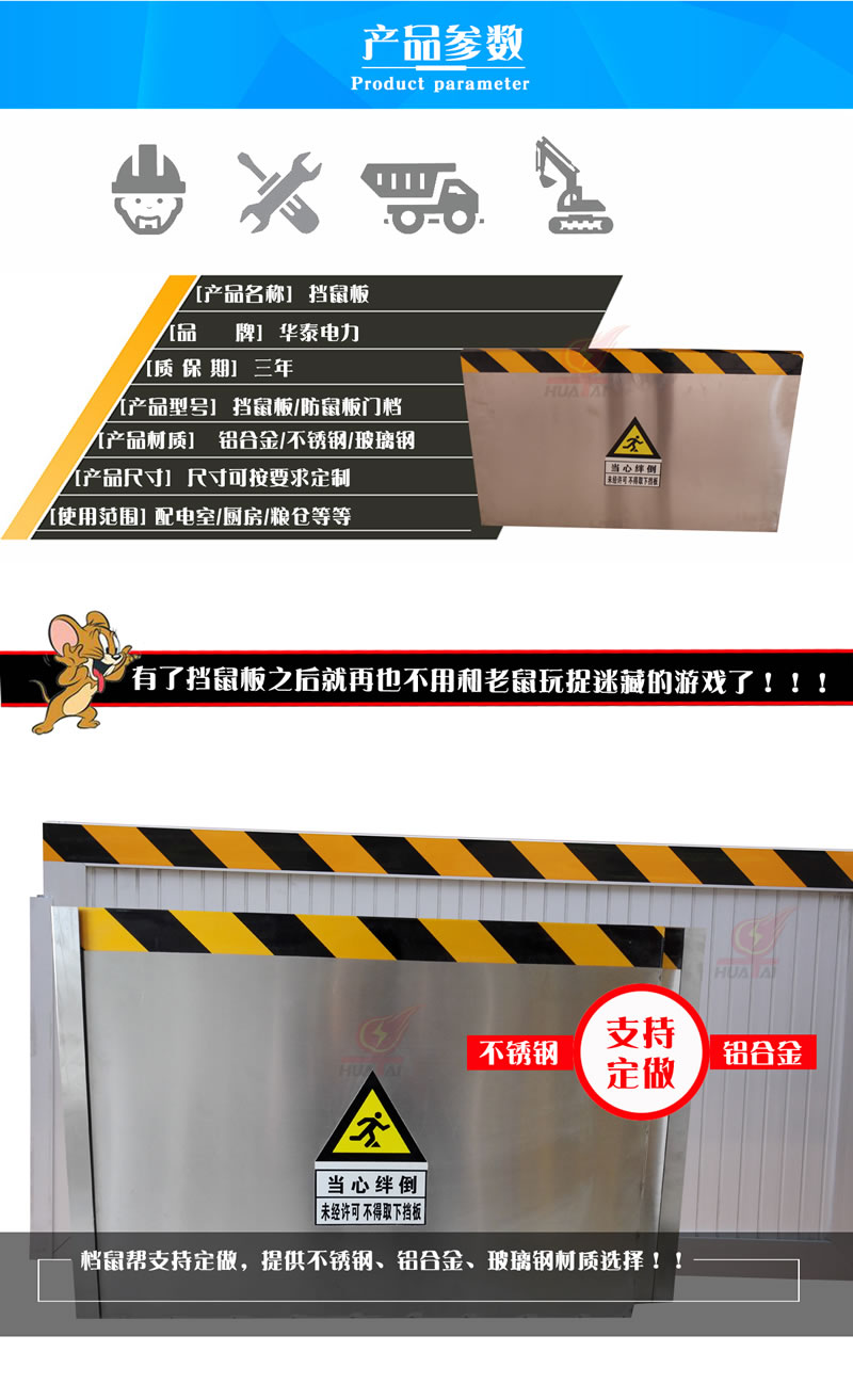 1.擋鼠板是由特質(zhì)鋁合金材質(zhì)制作而成,擋鼠板表面經(jīng)過防腐處理。