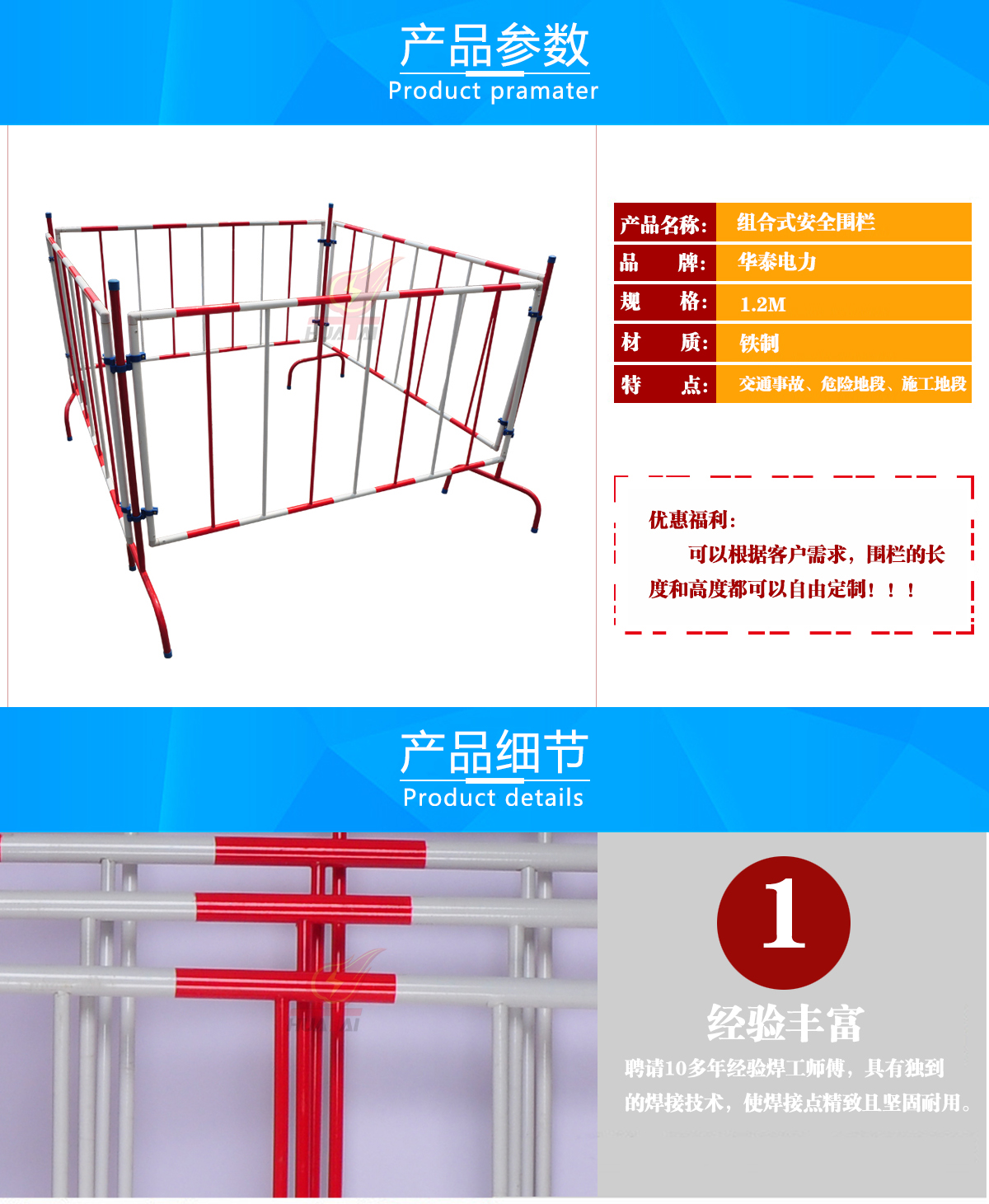 我廠專業(yè)生產各種安全圍欄:絕緣伸縮圍欄,玻璃鋼安全圍欄,不銹鋼伸縮圍欄,警示帶圍欄,安全圍旗式圍欄,安全圍網(wǎng)式圍欄,安全圍網(wǎng)又稱封閉式安全圍欄。    為了滿足不同工作地面的需求,我們設計了鑄鐵式安全圍網(wǎng)底座,鐵叉式安全圍欄底座和便攜式安全圍欄底座(傘式安全圍欄底座)三種支座,供用戶選用。其中鑄鐵式安全圍網(wǎng)底座分6斤、8斤、10斤三種型號.  安全圍網(wǎng)使用環(huán)境:裝設安全圍欄是保證現(xiàn)場工作人員安全技術措施之一,主要用于發(fā)電廠,變電站的電氣設備檢修、電氣實驗、配電檢修等。整套圍欄由玻璃鋼圍欄片、支撐桿和支座組成。結構特點是玻璃鋼為絕緣材料,且耐老化,經(jīng)過防水處理后可增強其防潮性,保證玻璃鋼安全圍欄的絕緣性,該安全圍欄紅白相間,色彩鮮明,經(jīng)久耐用。支撐桿用堅硬質輕的玻璃鋼管制成,上面配有掛鉤,可以牢固固定玻璃鋼安全圍欄片,使之不被掀起脫離.我公司還可根據(jù)用戶要求定做。