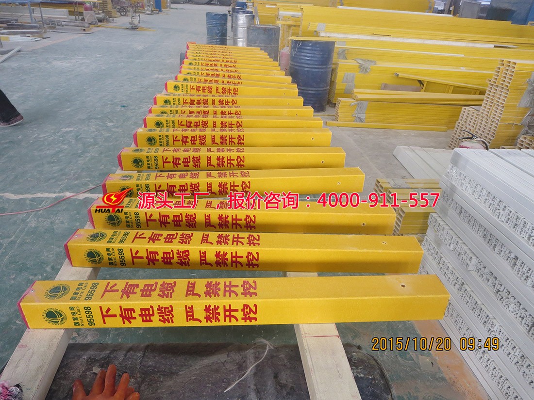 經(jīng)高溫壓制而成。抗沖擊,耐磨損,耐高溫,耐腐蝕,可以抗水、汽油、酒精、電解鹽、醋酸、鹽酸、鈉鉀化合物、尿、瀝青,適合各種酸堿土壤。使用壽命長達30年。內(nèi)容采用絲網(wǎng)印刷技術(shù),警示效果好,不需要維護。重量輕,便于運輸安裝。無回收價值,自然防盜。